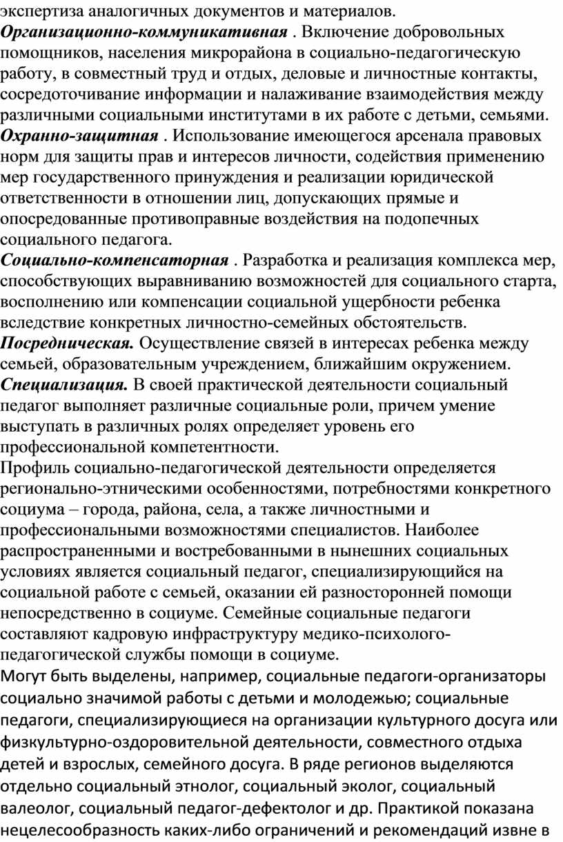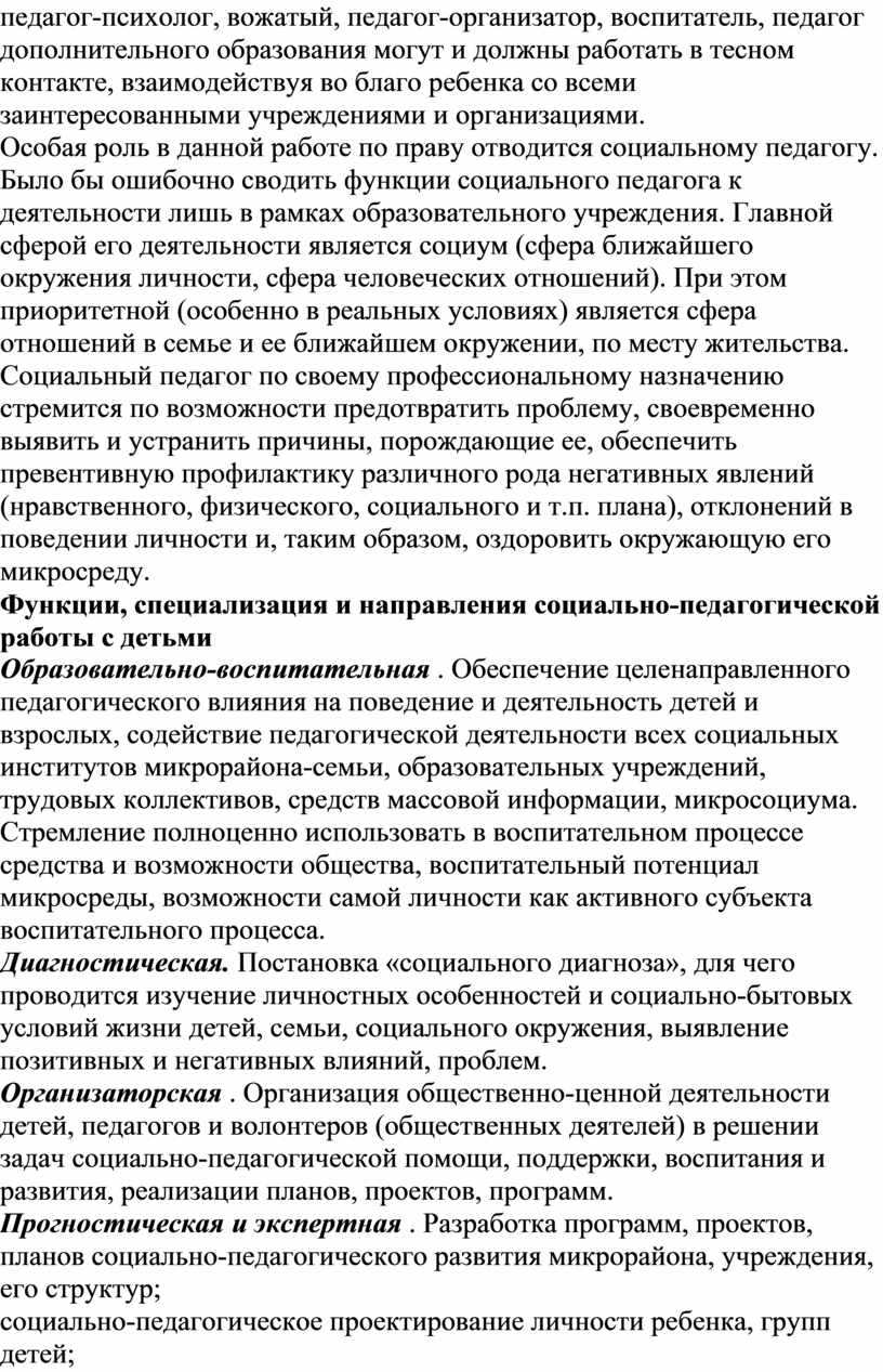Функции, специализация и направления социально-педагогической работы с детьми