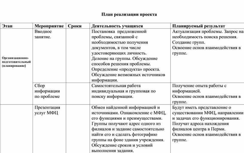 План реализации проекта