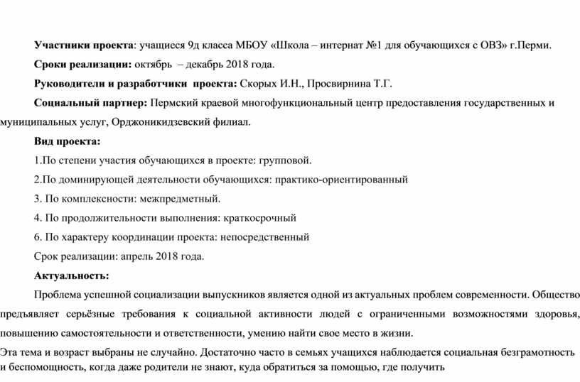 Также проект направлен на развитие готовности к разрешению личных проблем, в частности проблем с оформлением необходимых документов.