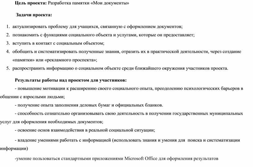 Цель проекта: Разработка памятки «Мои документы»