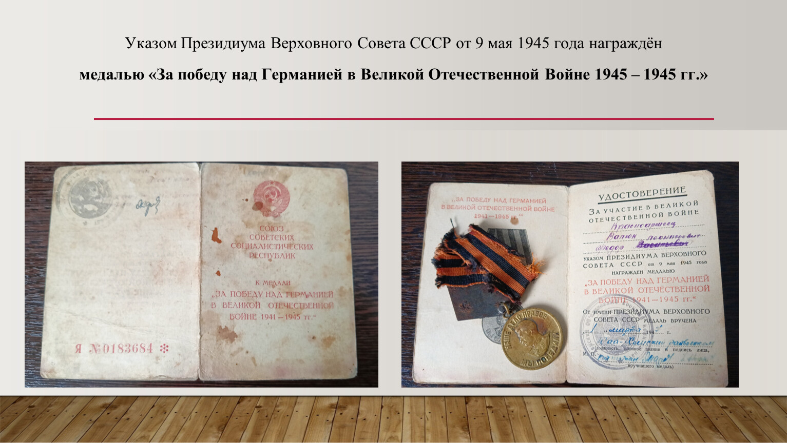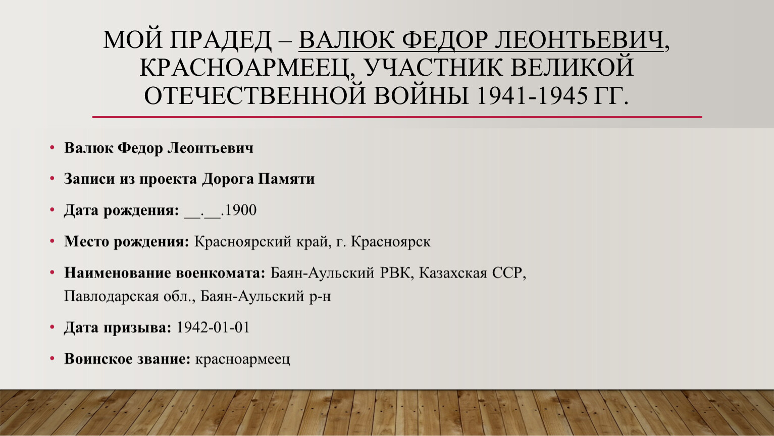 Мой прадед – Валюк Федор Леонтьевич, красноармеец, участник Великой Отечественной Войны 1941-1945 гг.