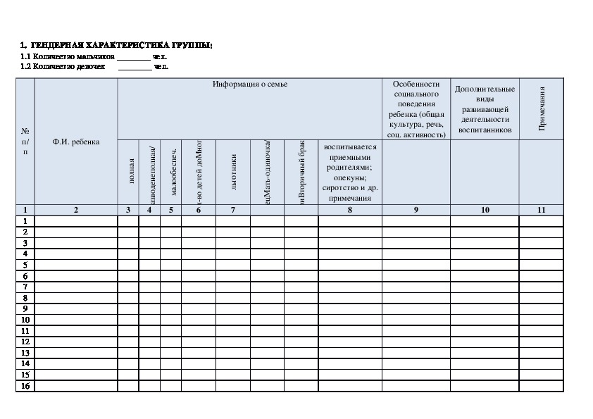 1.1 Количество мальчиков ________ чел.