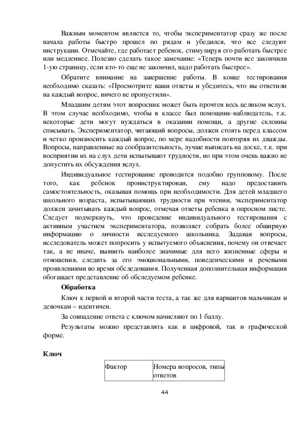 личности ребенка на начальном этапе обучения и подбор индивидуальной