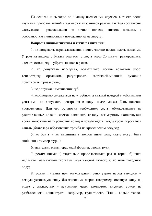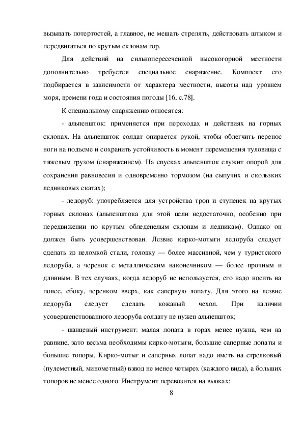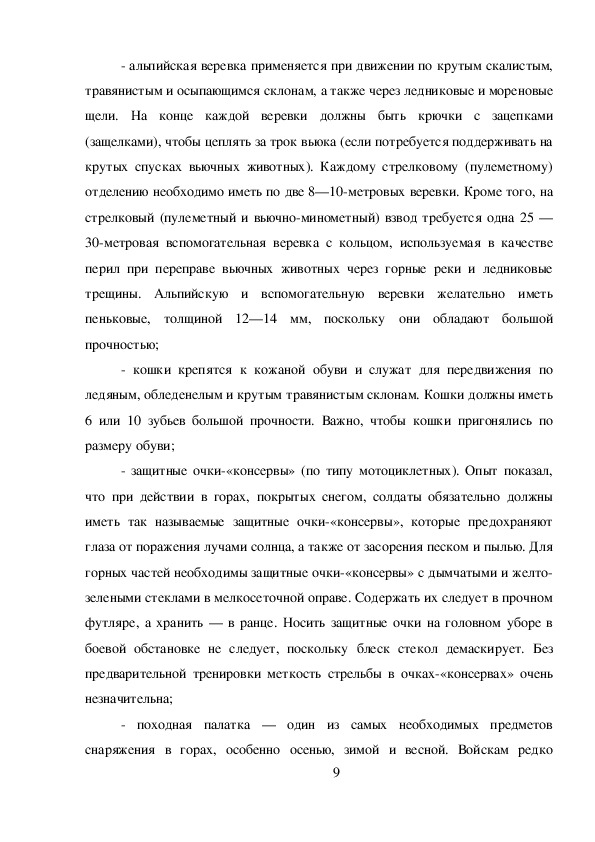 подготовки к действиям в горах и не оснащенные специальным снаряжением,