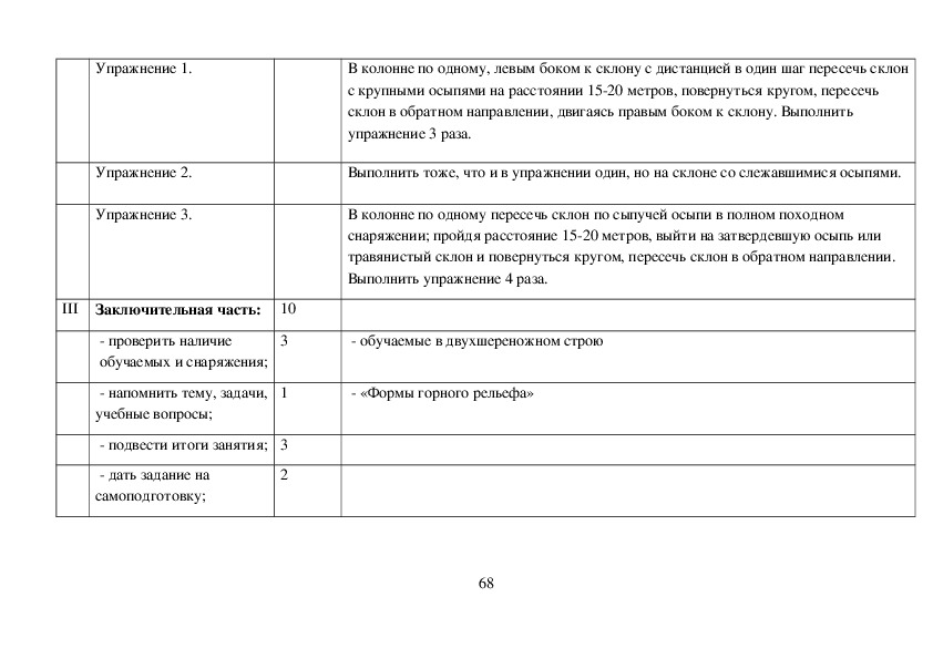 местности и противника в горах; нести службу боевого обеспечения в походе,