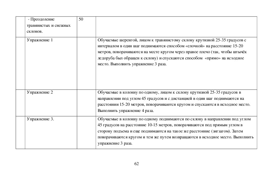 перевалах; устраивать в горах окопы и заграждения и преодолевать различные