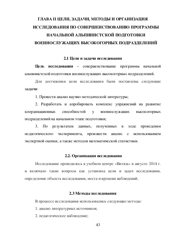 ГЛАВА II Цели, задачи, методы и организация исследования по