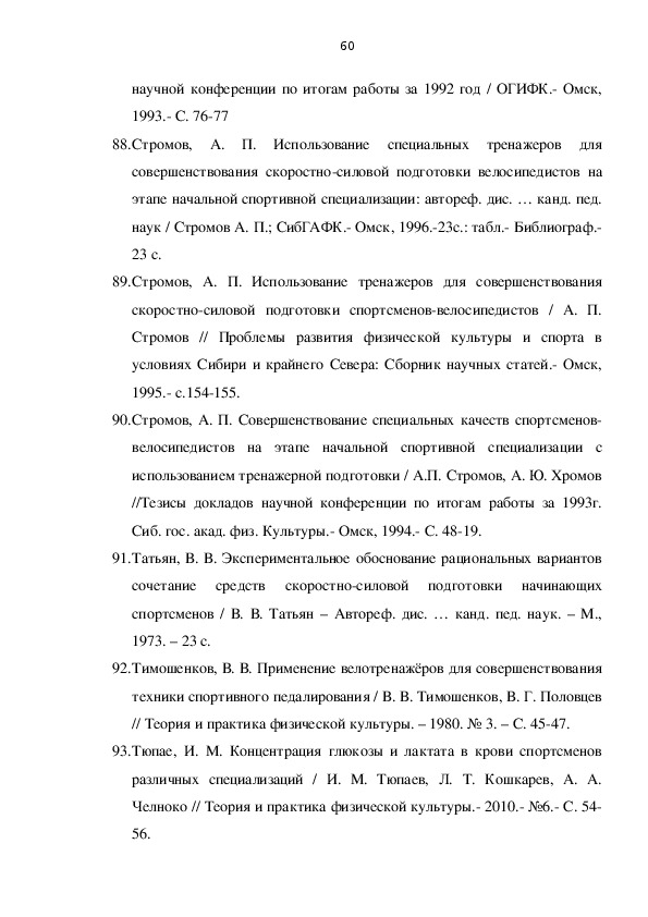 спортсменоввелосипедистов / А. П. Стромов // Тезисы докладов60