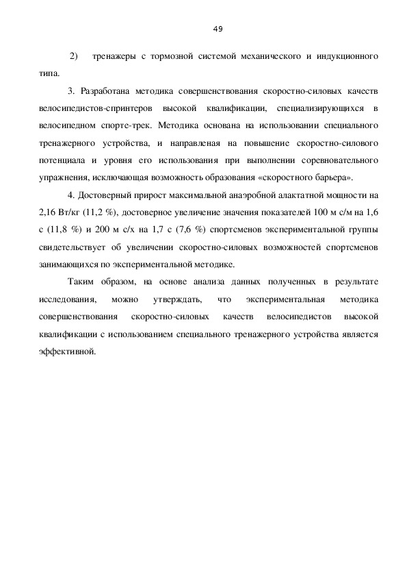силовых качеств велосипедистов высокой квалификации, специализирующихся в