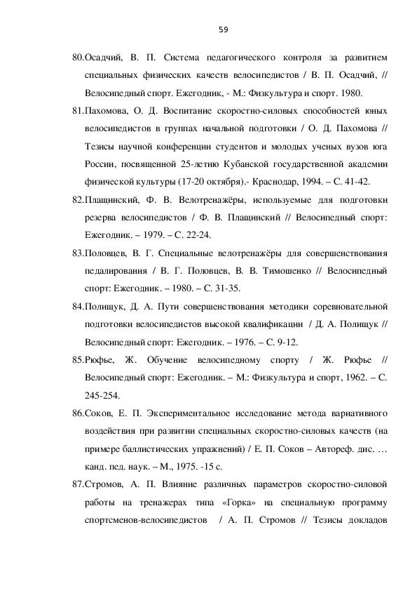 скоростносиловой подготовки спортсменоввелосипедистов / А. П.