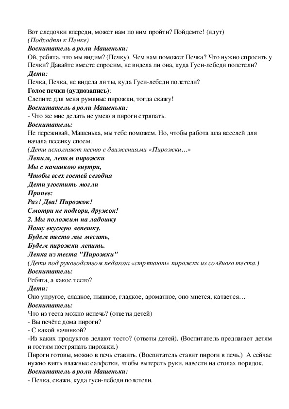 Пироги готовы, можно в печь ставить. (Воспитатель ставит пироги в печь.) А сейчас