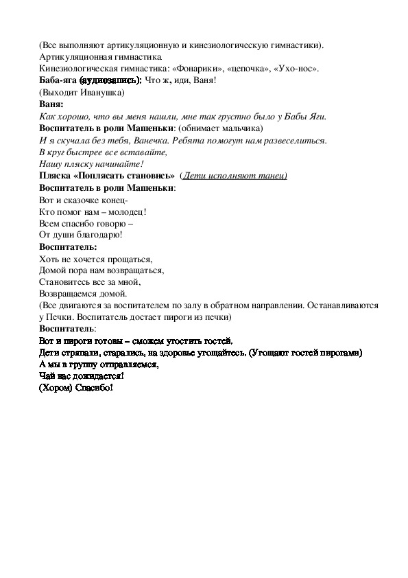Воспитатель в роли Машеньки: А теперь можно попросить Бабу Ягу, может она