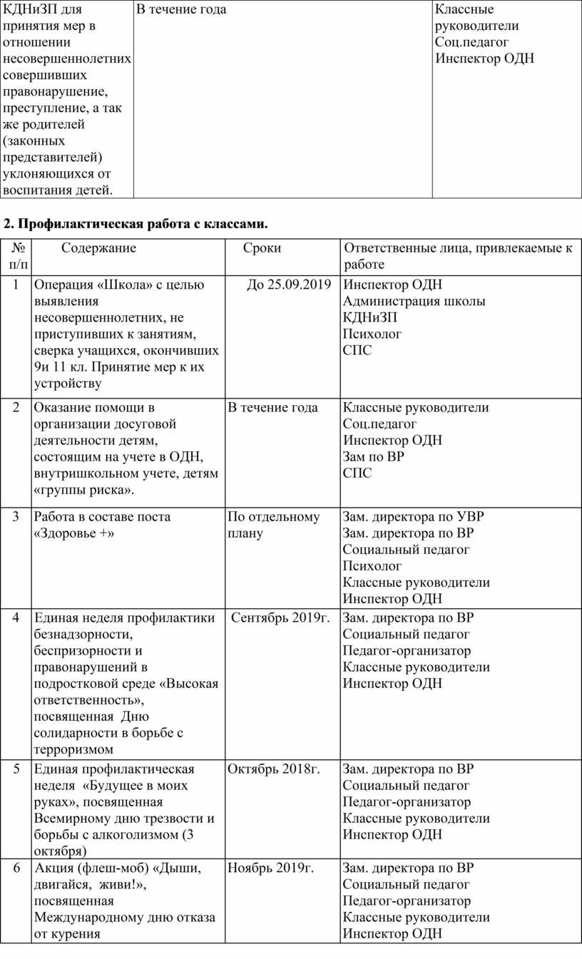 2. Профилактическая работа с классами.
