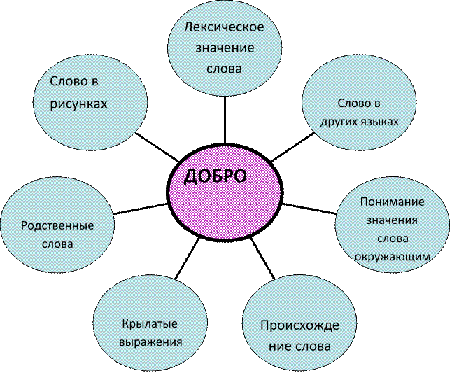 В ходе диалога вышли на классическое понятие «Добро побеждает зло», поставили вопрос: А что такое добро? И выдвинули идею, что можно исследовать слово ДОБРО.