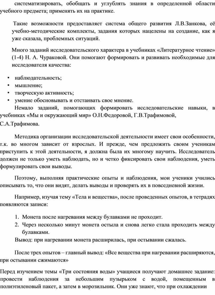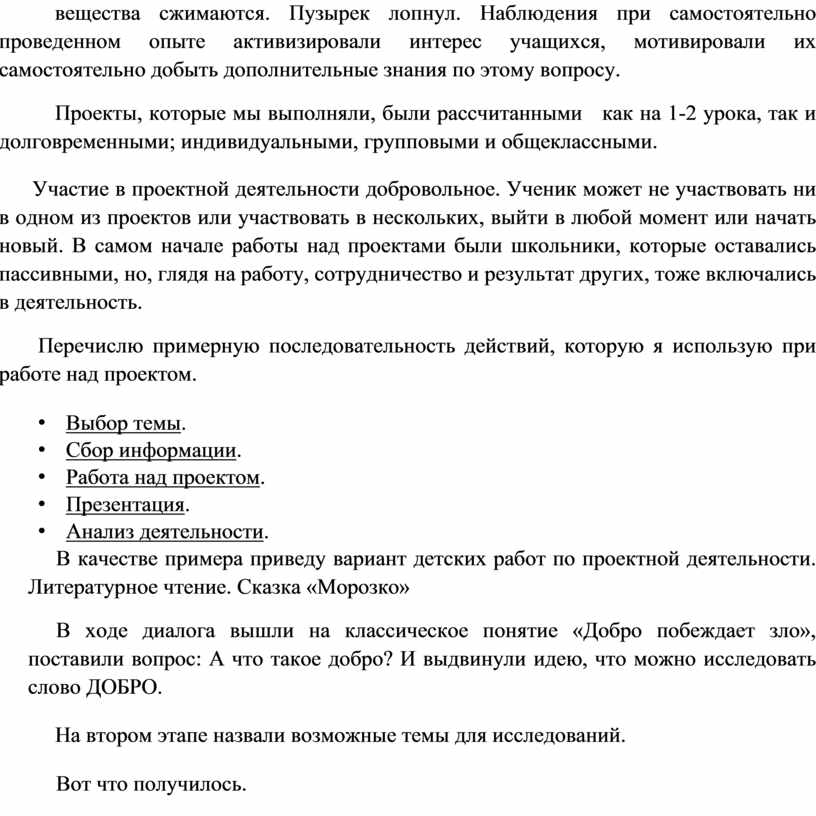 Поэтому, выполняя практические опыты и наблюдения, мои ученики учились описывать то, что они видят, делать выводы и проверять их в повседневной жизни.