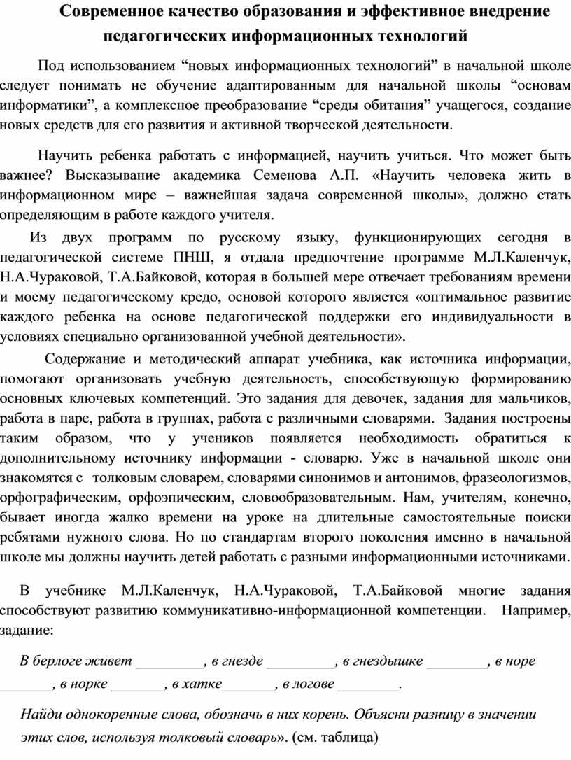 Современное качество образования и эффективное внедрение педагогических информационных технологий