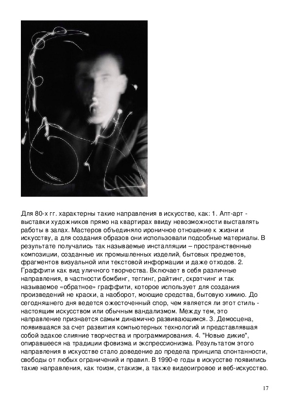 16Для 80х гг. характерны такие направления в искусстве, как: 1. Аптарт