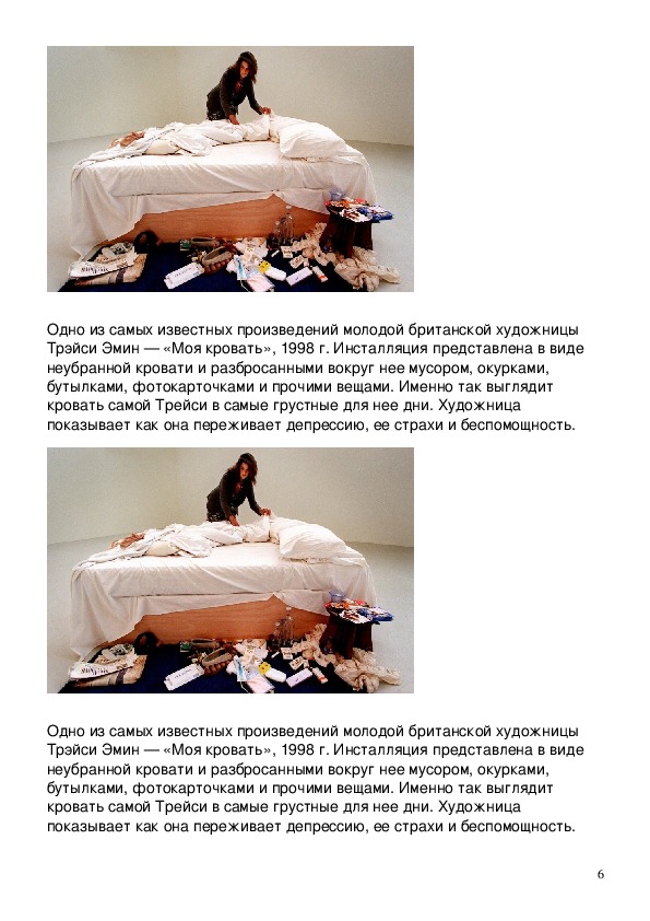 Трэйси Эмин — «Моя кровать», 1998 г. Инсталляция представлена в виде
