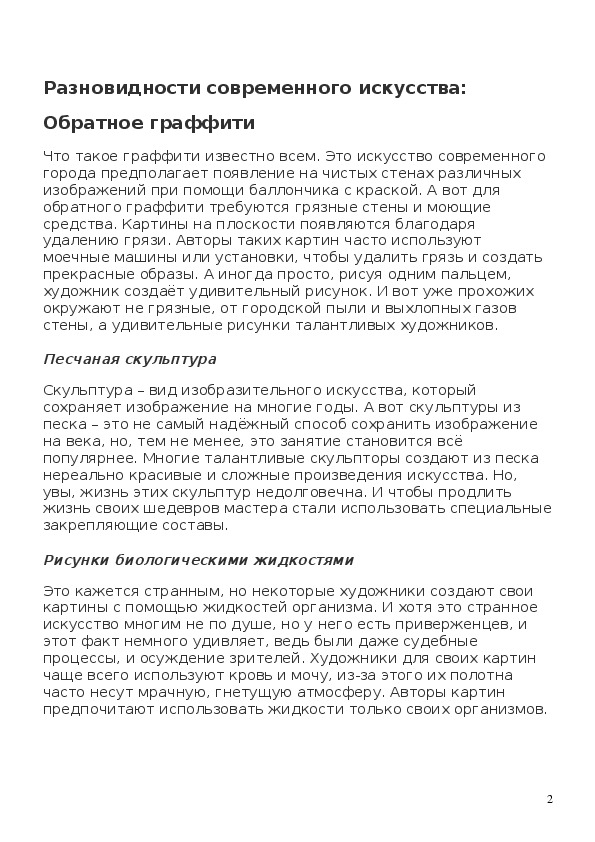 чтобы вновь набрать темп и спешить в вихрь событий и дел.Разновидности современного искусства:
