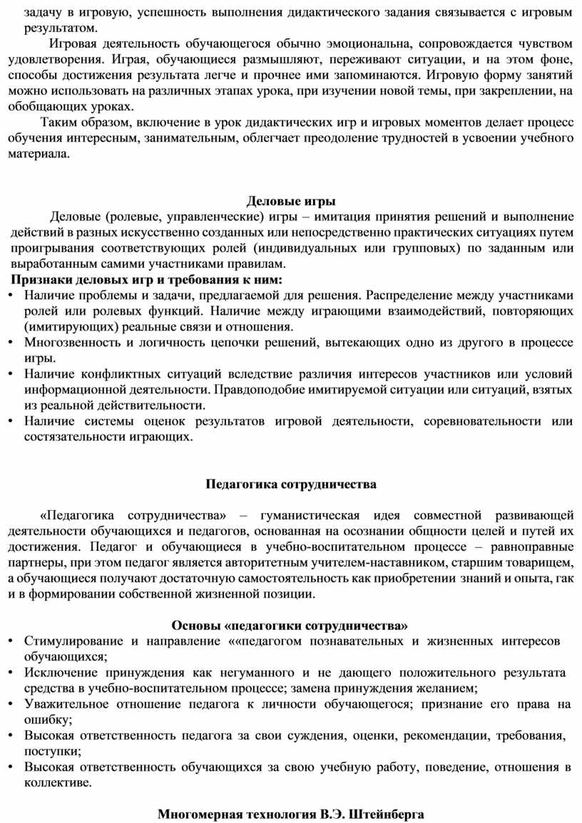 · Технология перспективно-опережающего обучения. Достижение обучающимися обязательного минимума содержания образования. Обучение способам решения проблем, навыкам рассмотрения возможностей и использования знаний в конкретных ситуациях. Предоставление возможностей каждому обучающемуся самостоятельно определять пути, способы, средства поиска истины (результата). Способствовать формированию