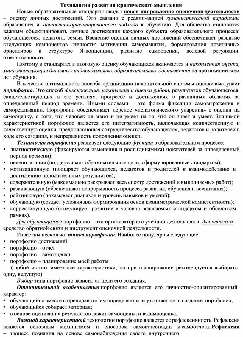 Технология портфолио реализует следующие функции в образовательном процессе: