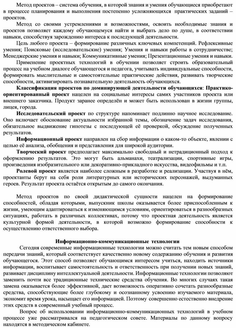 Вопрос об использовании информационно-коммуникационных технологий в учебном процессе уже рассматривался на педагогическом совете. Материалы по данному вопросу находятся в методическом кабинете.