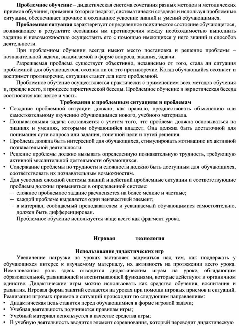 · Технология проблемного обучения (учебный диалог как специфический вид технологии, технология проблемного (эвристического) обучения. Приобретение обучающимися знаний, умений и навыков, освоение способов самостоятельной деятельности, развитие познавательных и творческих способностей.