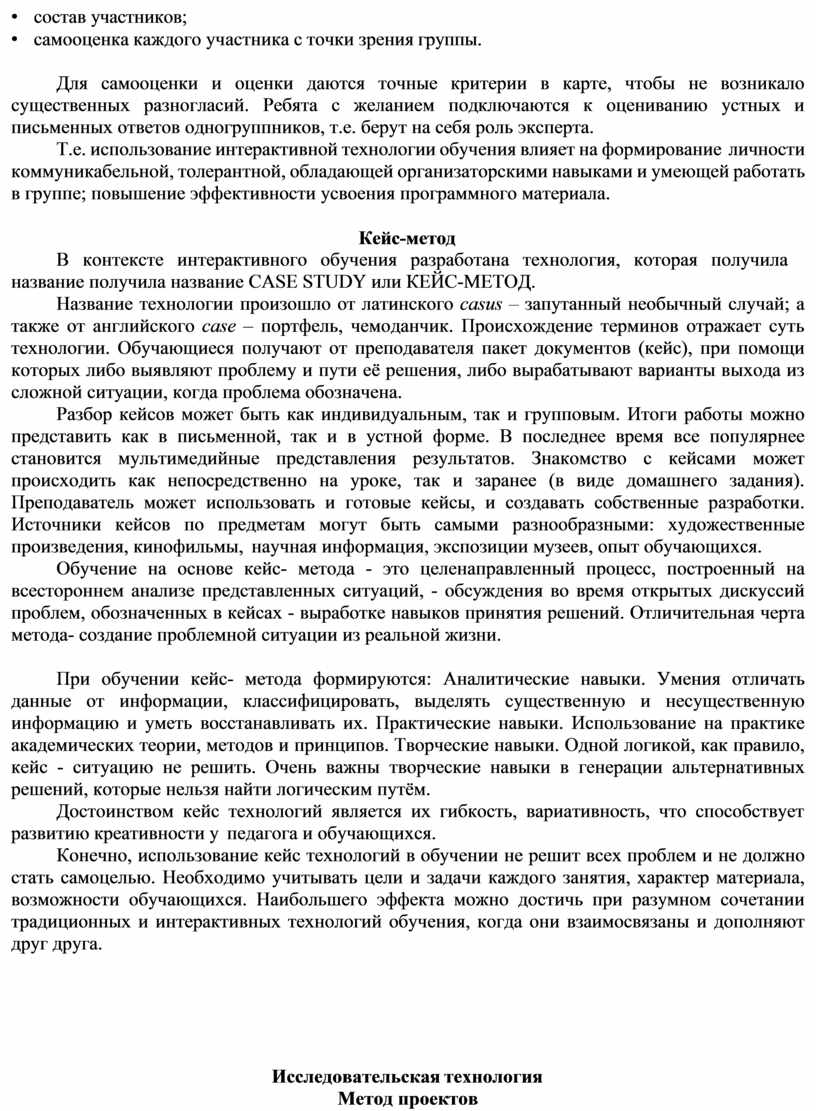 В контексте интерактивного обучения разработана технология, которая получила название получила название CASE STUDY или КЕЙС-МЕТОД.