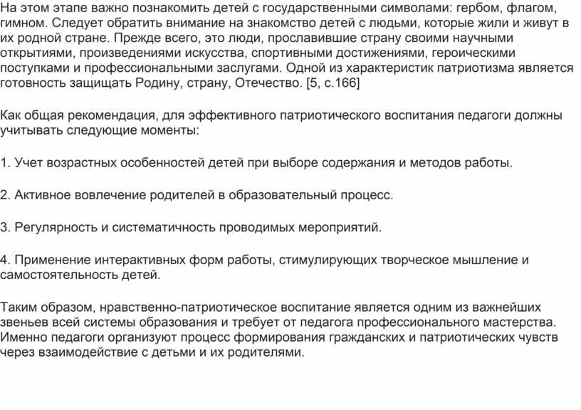 Как общая рекомендация, для эффективного патриотического воспитания педагоги должны учитывать следующие моменты: