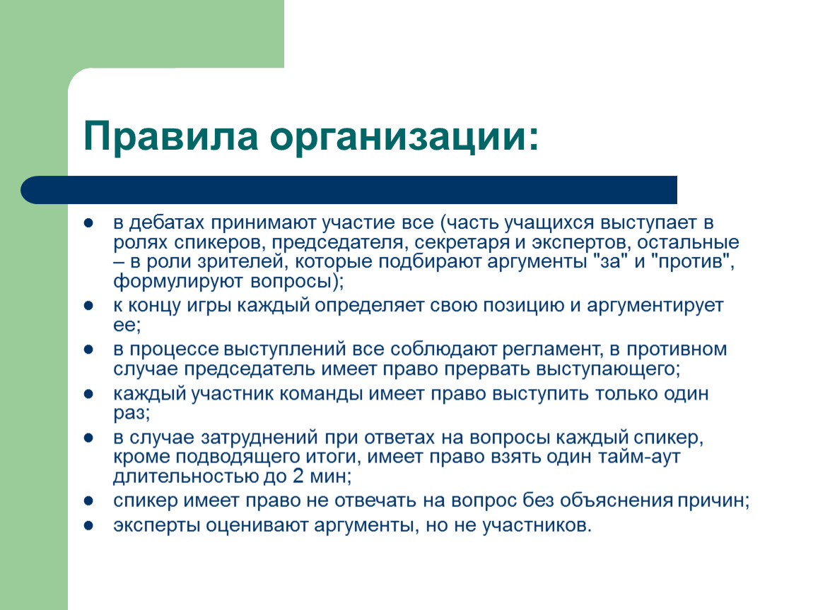 Знакомство участников с сущностью, особенностями, правилами организации и проведения дебатов.