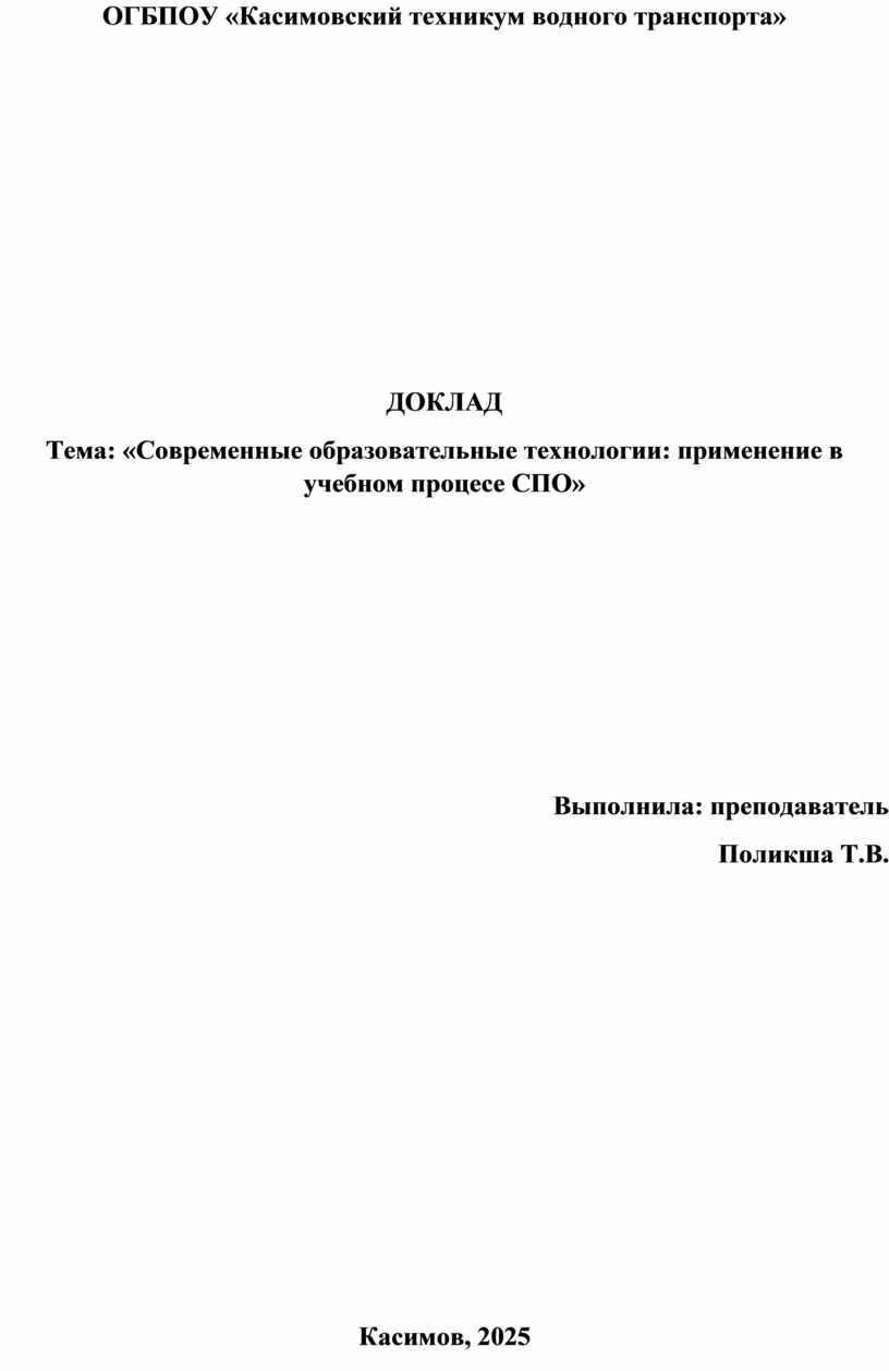 Тема: «Современные образовательные технологии: применение в учебном процесе СПО»