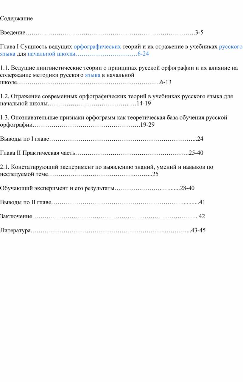 Глава I Сущность ведущих орфографических теорий и их отражение в учебниках русского языка для начальной школы…………………………6-24