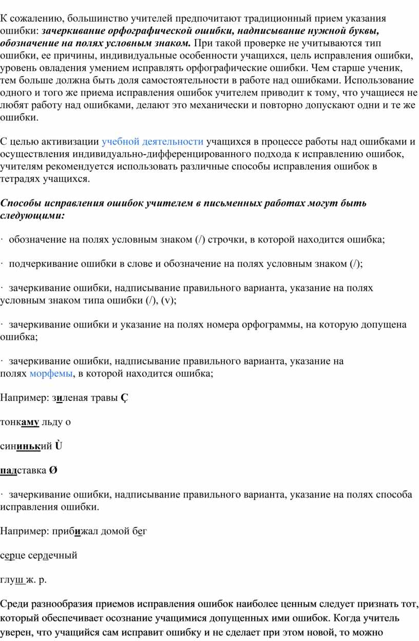 Способы исправления ошибок учителем в письменных работах могут быть следующими: