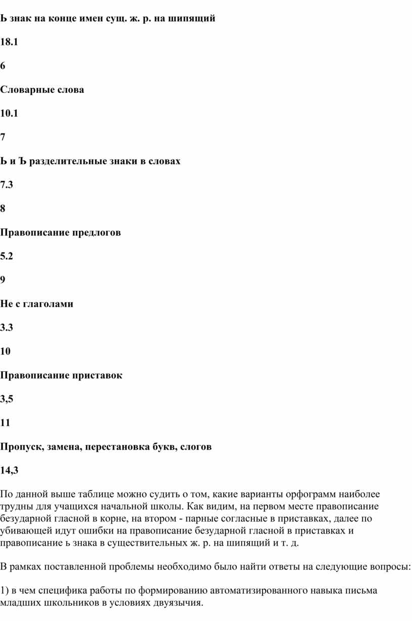 Учитывая это обстоятельство, в данной работе мы сконцентрировали особое внимание на узловых вопросах, связанных с особенностями формирования орфографического навыка учащихся начальной школы.