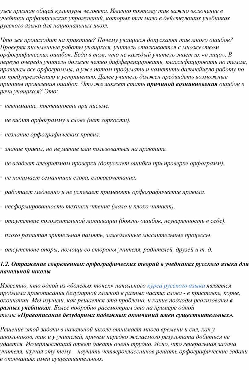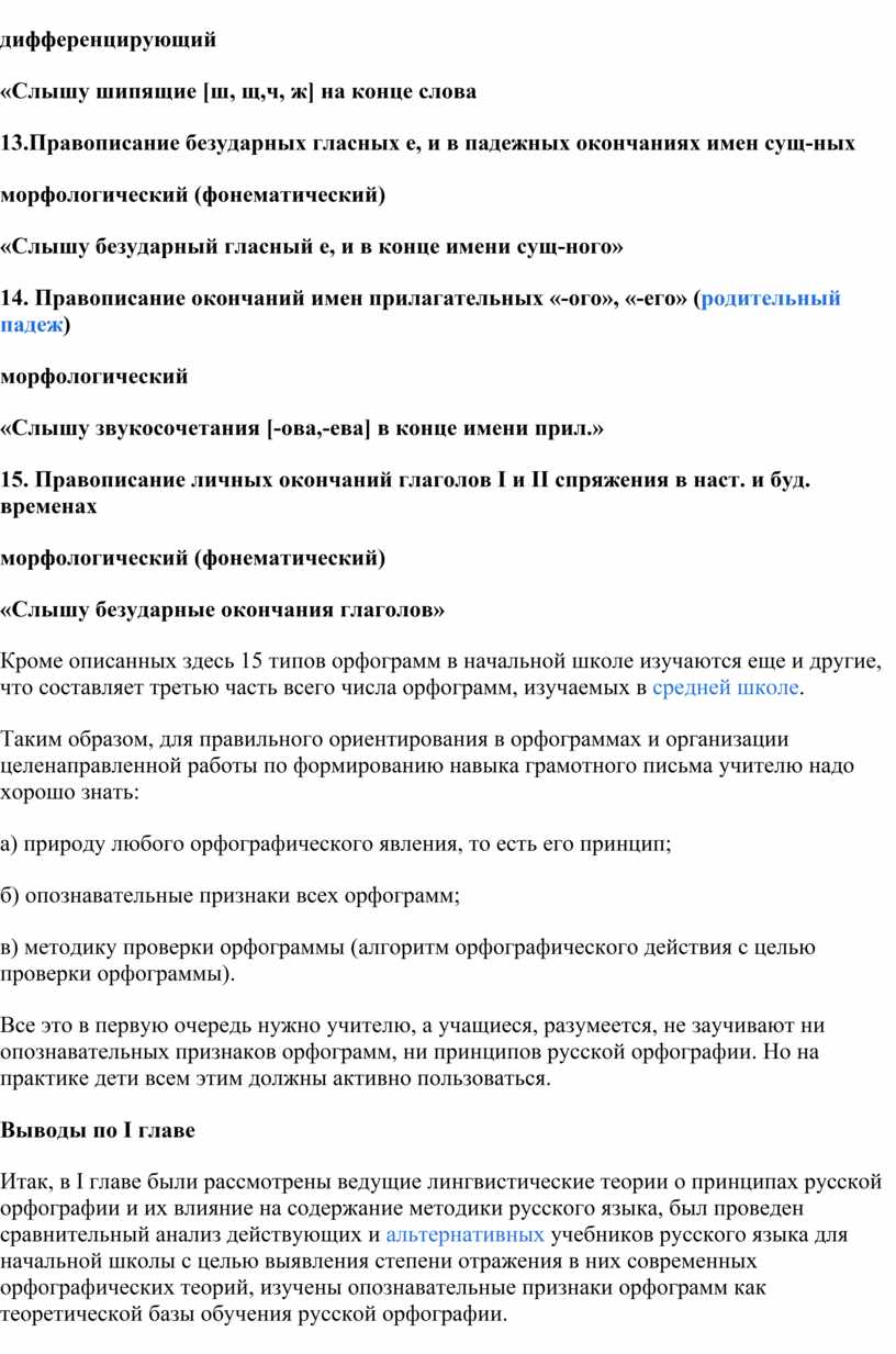 Глава I. Сущность современных орфографических теорий и их отражение в учебниках русского языка для начальной школы.