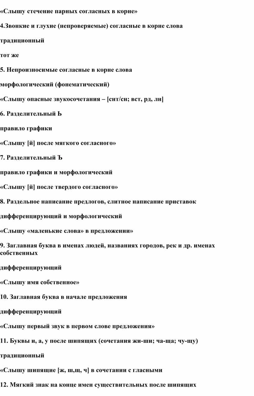 - обучение правописанию на основе запоминания буквенного состава слов, их морфемного состава, словообразовательных гнезд, на основе проговаривания и списывания;