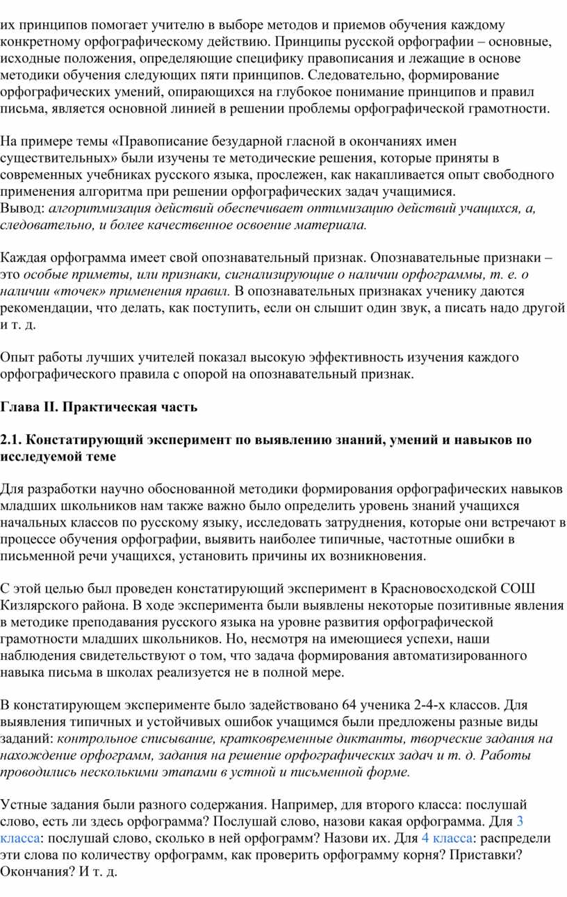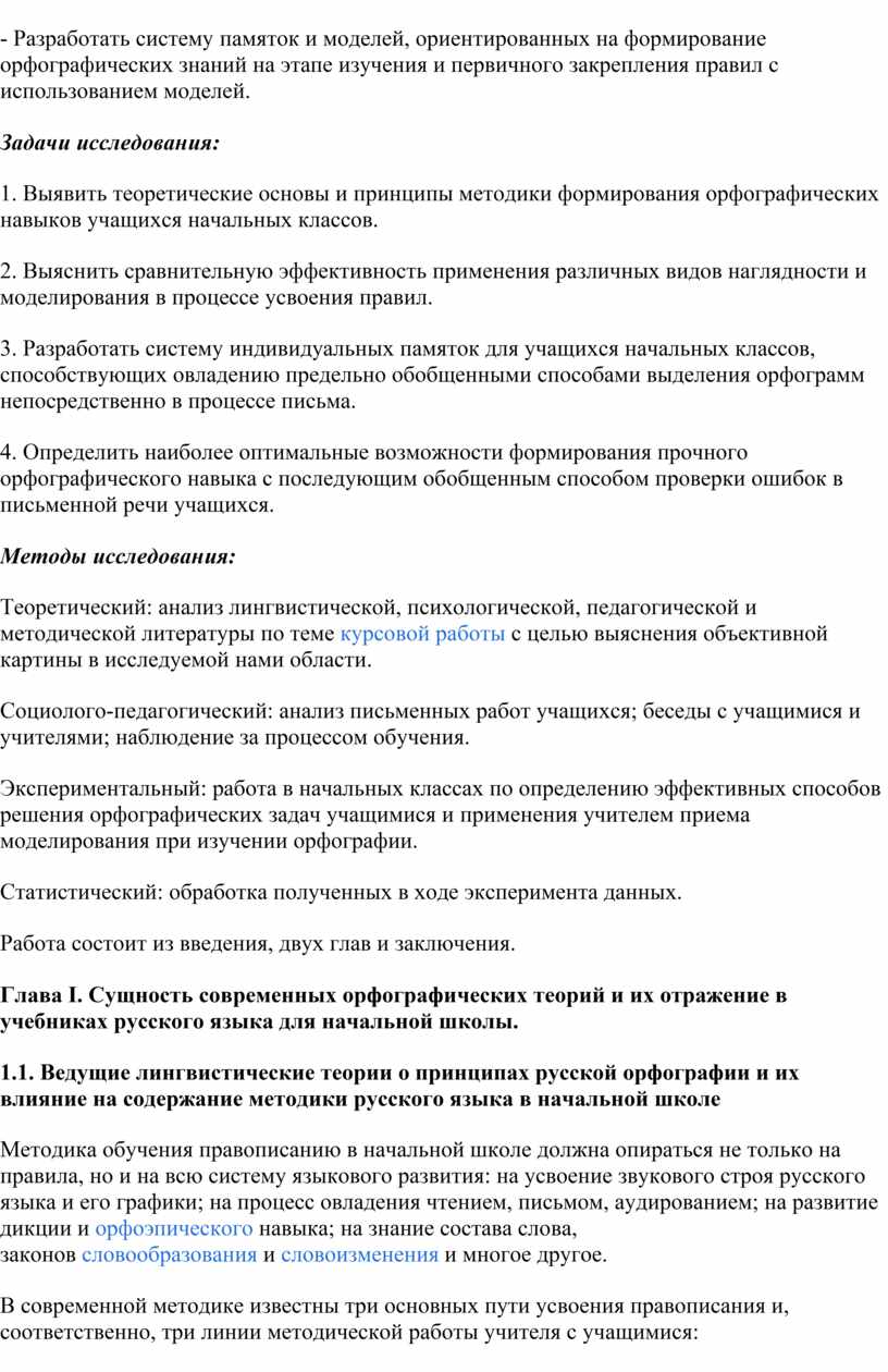 1. Выявить теоретические основы и принципы методики формирования орфографических навыков учащихся начальных классов.