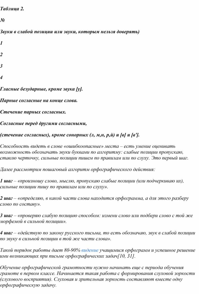 Что такое орфографическая зоркость? С точки зрения фонематической концепции орфографическая зоркость – это умение оценивать каждый звук в слове, т. е. умение различать, в какой позиции он стоит – в сильной или слабой. Способность, умение быстро обнаруживать в тексте орфограммы, определять их типы, и есть орфографическая зоркость. Отсутствие или недостаточная сформированность орфографического навыка является причиной большого количества ошибок учащихся.