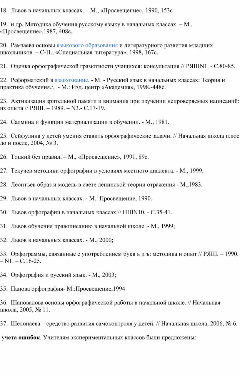 31. Львов обучения правописанию в начальной школе. - М., 1999;