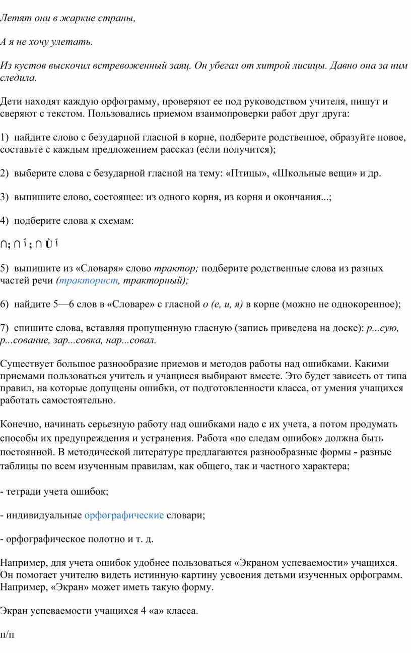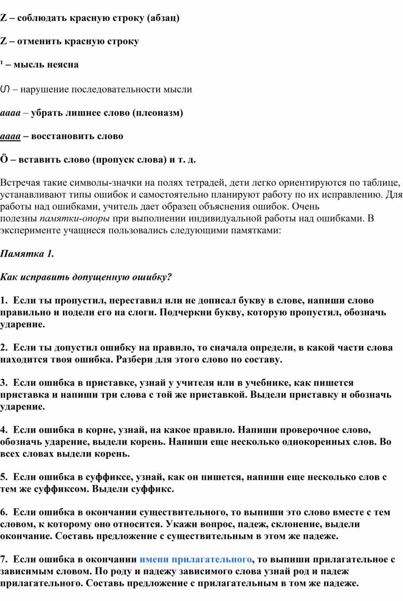 учета ошибок. Учителям экспериментальных классов были предложены: