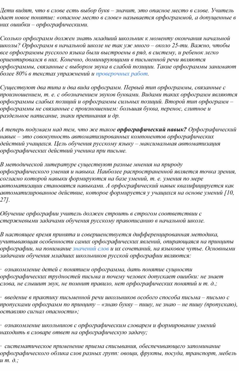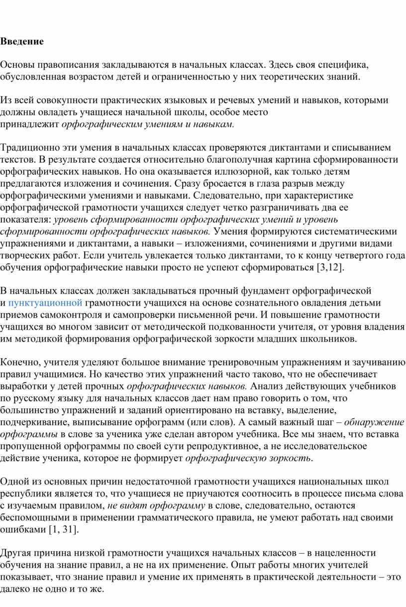 Из всей совокупности практических языковых и речевых умений и навыков, которыми должны овладеть учащиеся начальной школы, особое место принадлежит орфографическим умениям и навыкам.