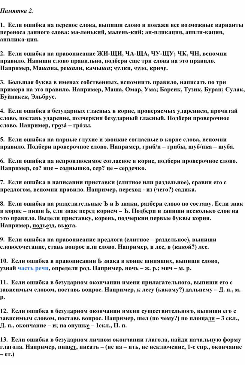 С целью формирования у детей орфографического самоконтроля как комплексного орфографического действия были составлены серии индивидуальных и общеклассных памяток.