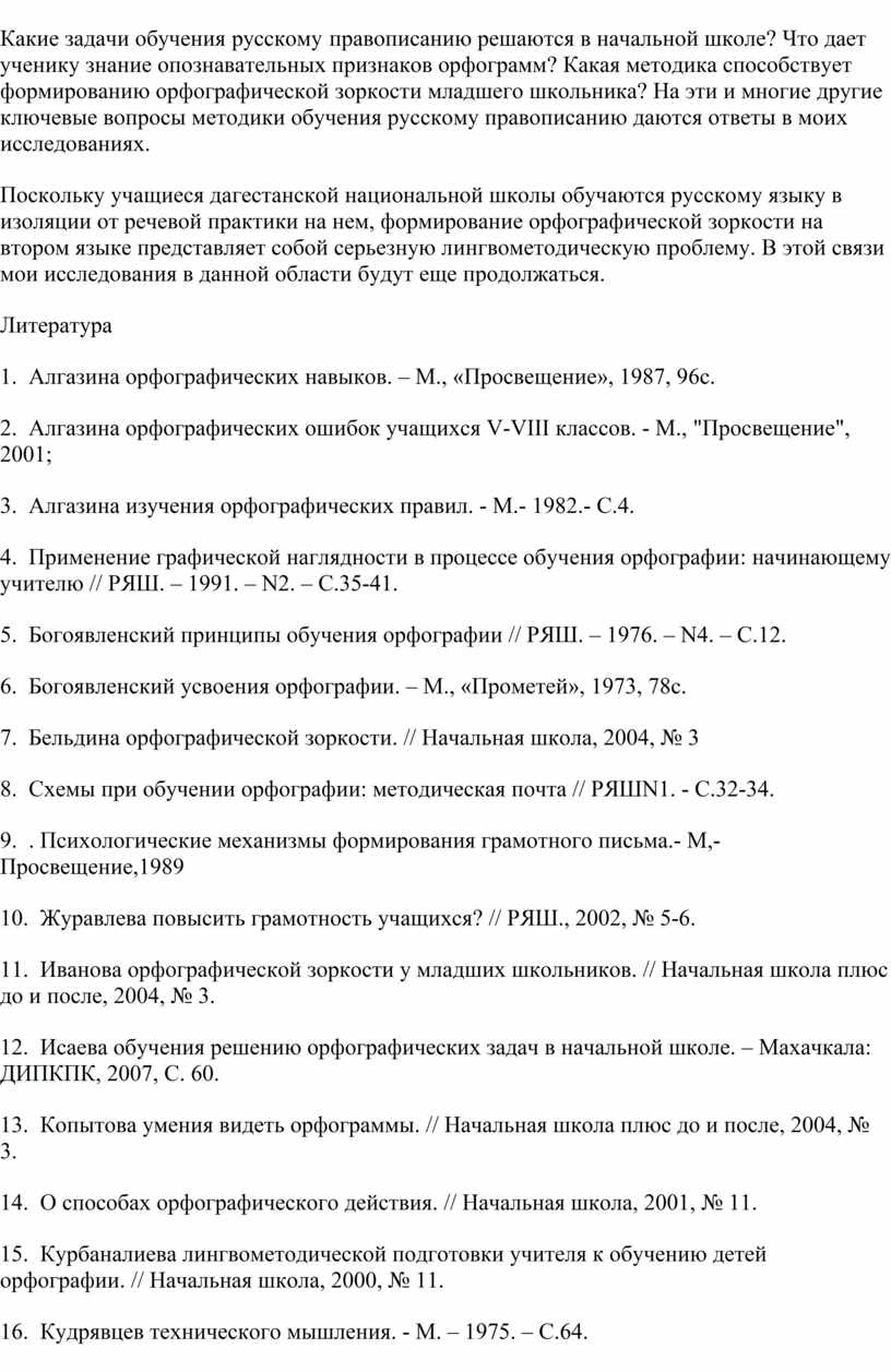 12. Исаева обучения решению орфографических задач в начальной школе. – Махачкала: ДИПКПК, 2007, С. 60.