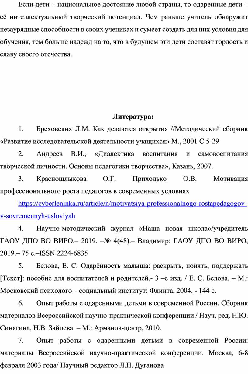 1. Бреховских Л.М. Как делаются открытия //Методический сборник «Развитие исследовательской деятельности учащихся» М., 2001 С.5-29