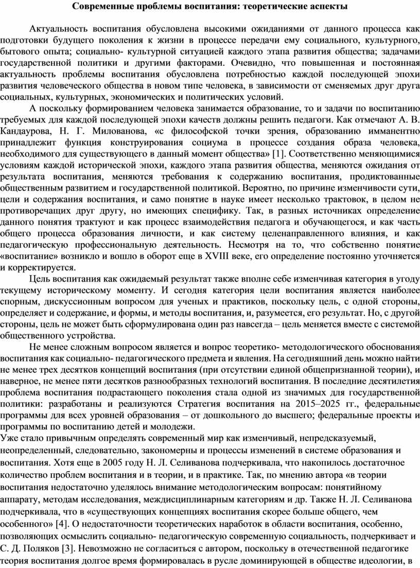 4. Селиванова Н. Л. Современные проблемы теории и практики воспитания // Известия Волгоградского государственного педагогического университета. – 2005. – № 4. – С. 32–35