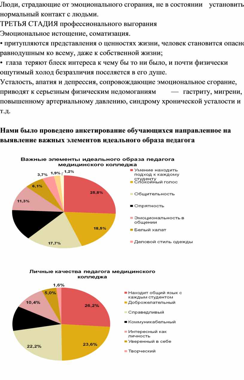 Для решения задачи по снижению негативных переживаний и трансформации их в положительные эмоциональные состояния, мы организуем методические совещания педагогов. Содержательно участники этих встреч, могут обсуждать результаты диагностических обследований, возникающие трудности при работе с отдельными категориями студентов, выявлять причины, влияющие на эмоциональное выгорание педагогов, делиться своими способами защиты от стресса.