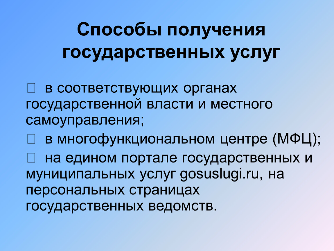 Способы получения государственных услуг