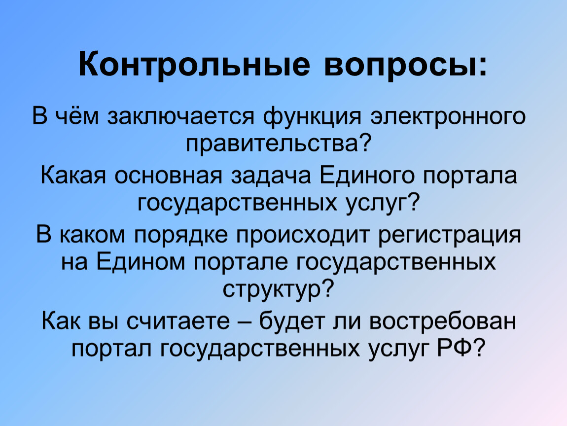 Задачи электронного правительства: