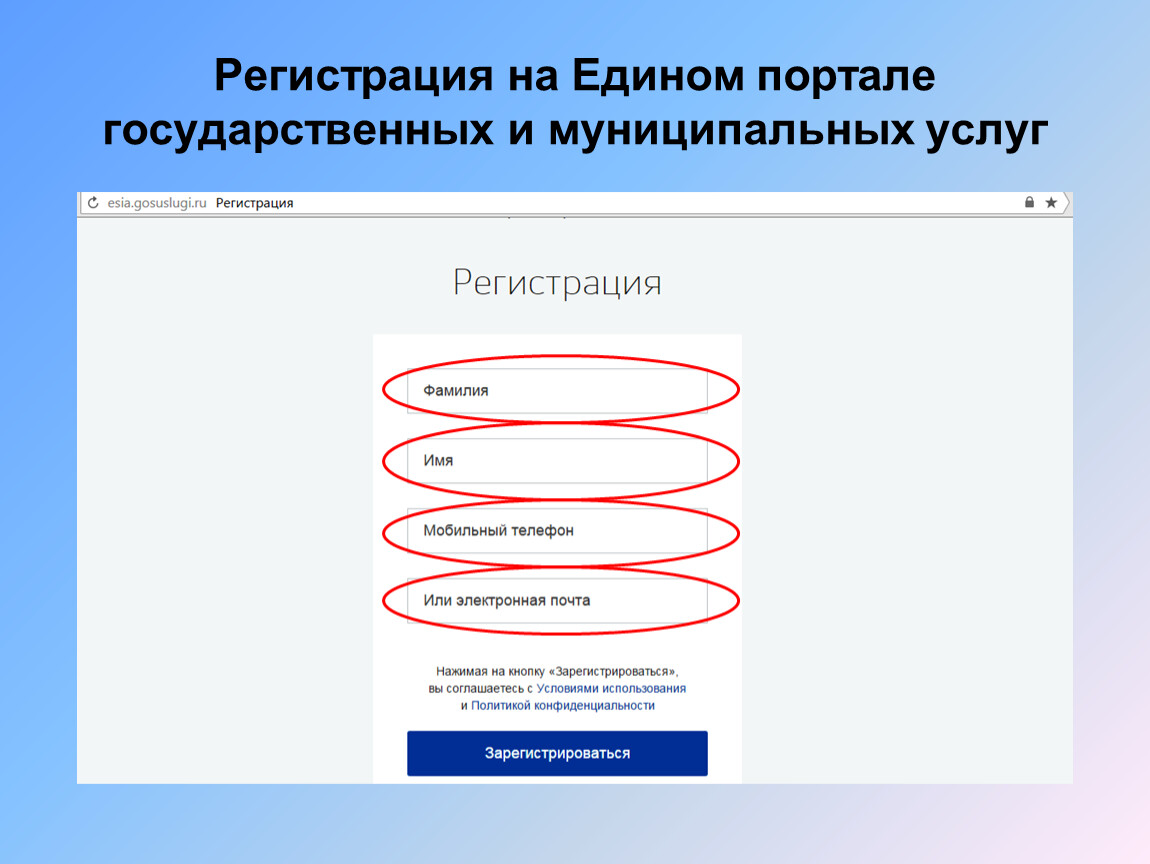 Пройти регистрацию на Едином портале государственных услуг gosuslugi.ru.