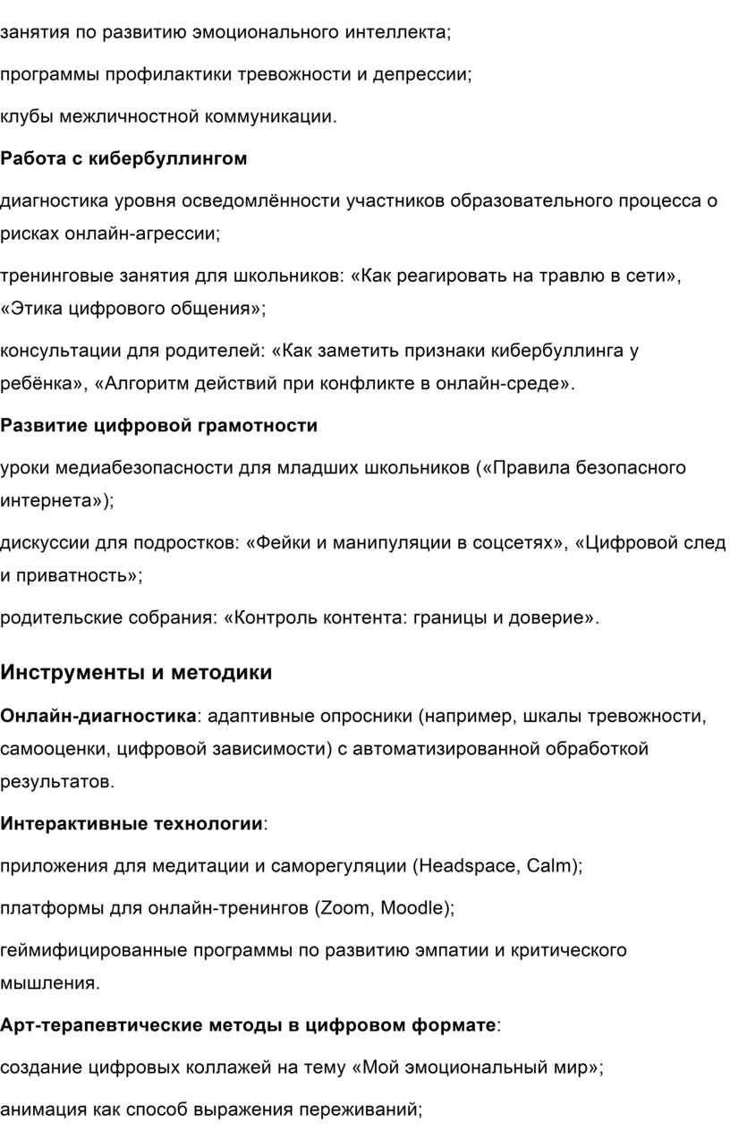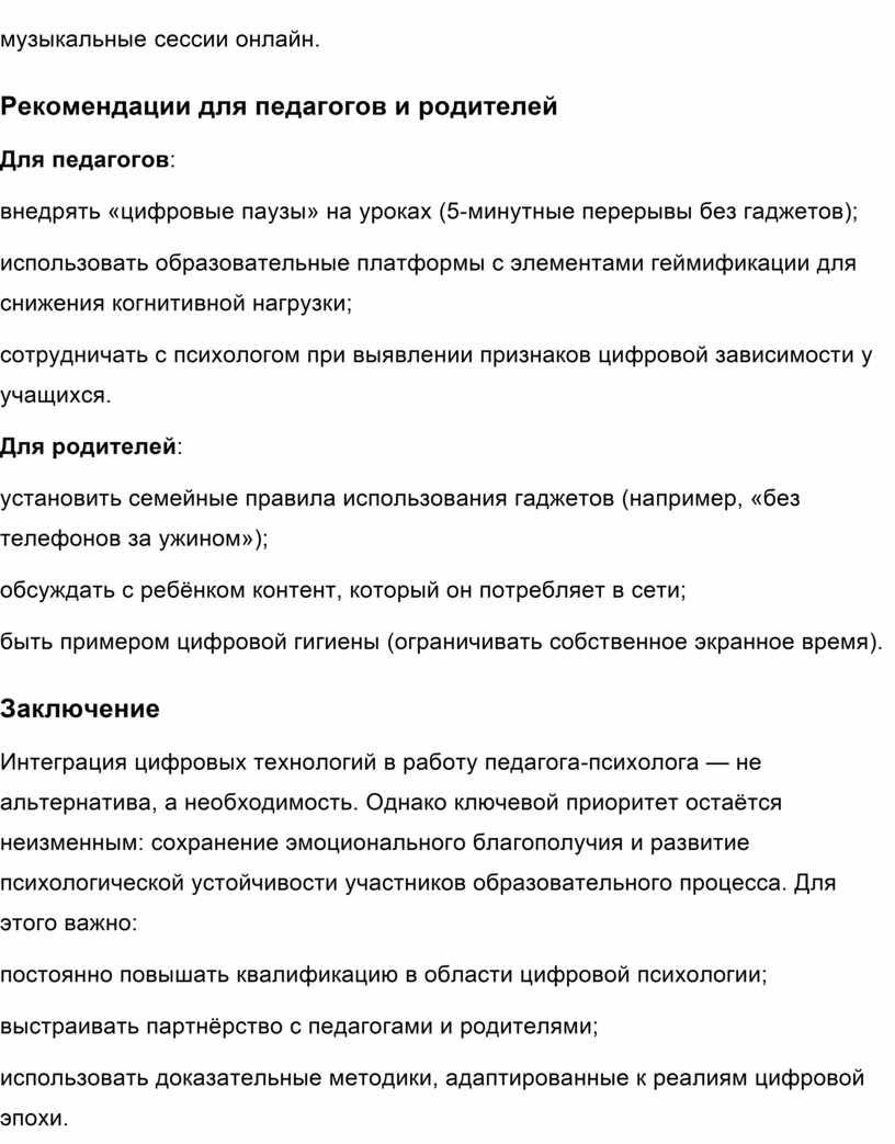 Интеграция цифровых технологий в работу педагога‑психолога — не альтернатива, а необходимость. Однако ключевой приоритет остаётся неизменным: сохранение эмоционального благополучия и развитие психологической устойчивости участников образовательного процесса. Для этого важно: